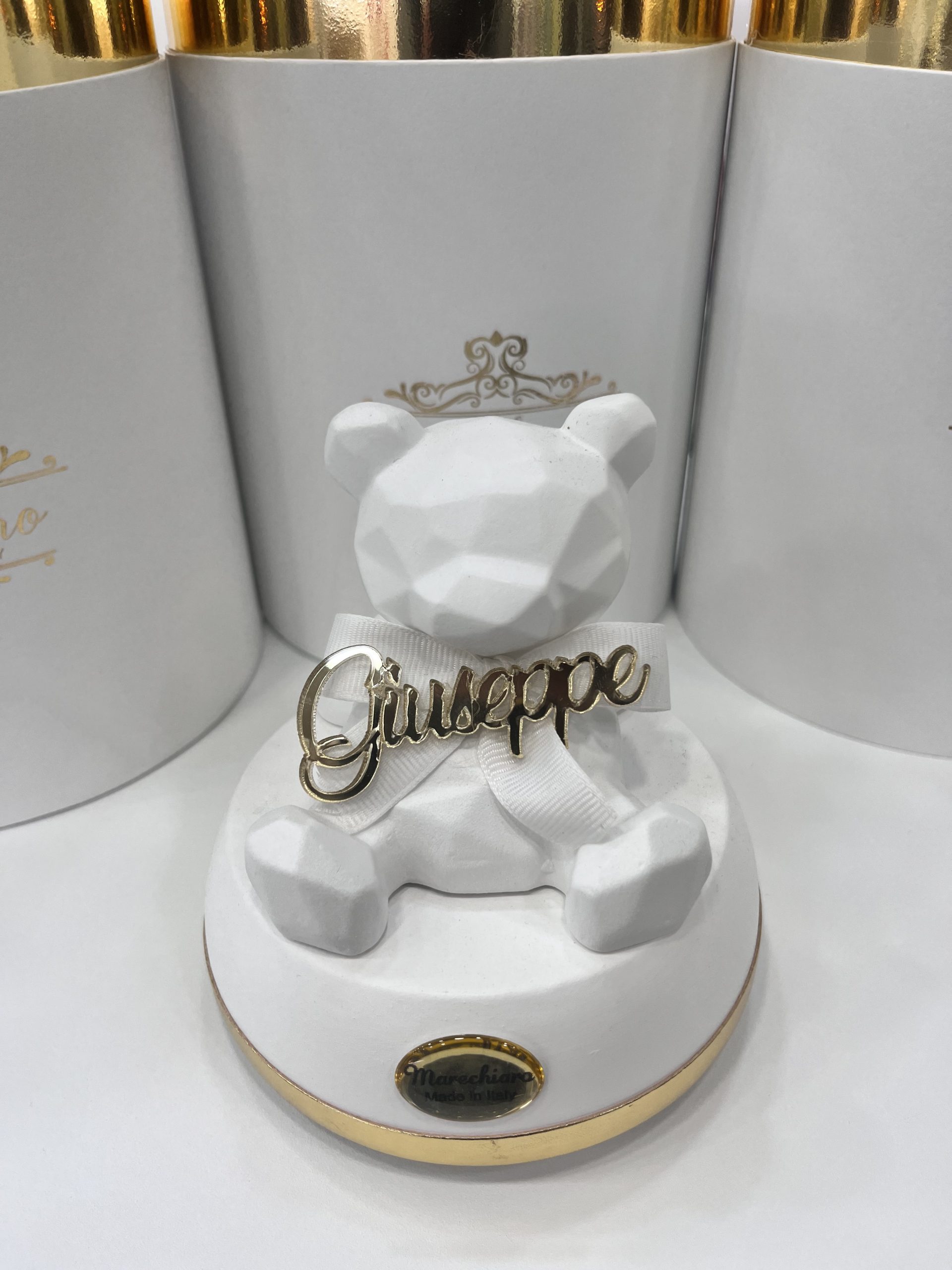 Il Carillon Teddy Bianco, in ceramica, rappresenta l’articolo ideale nella scelta delle bomboniere per le cerimonie dei nostri piccoli.
