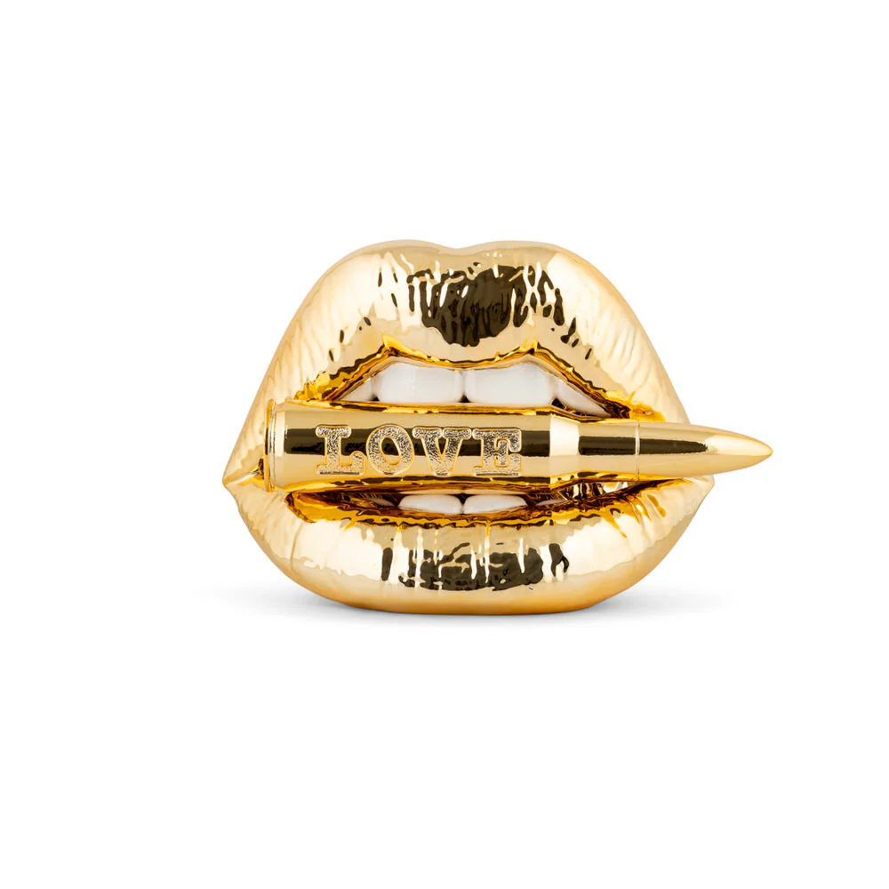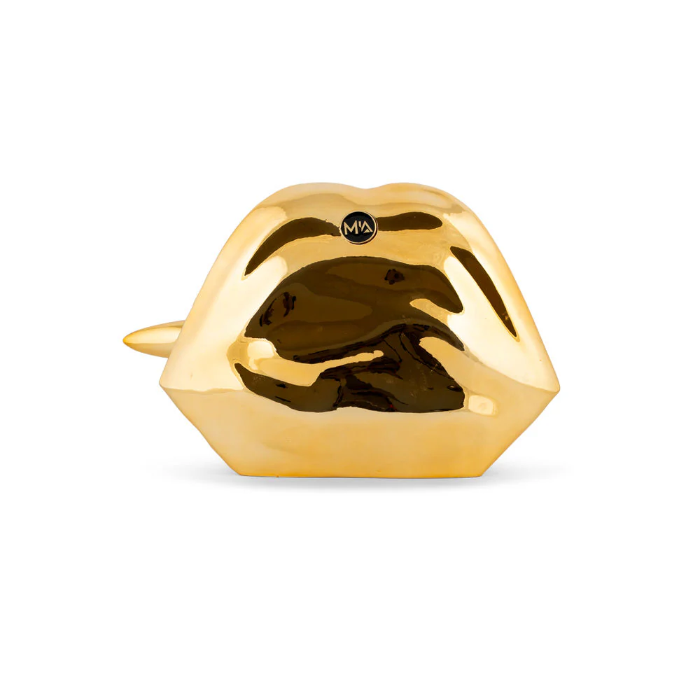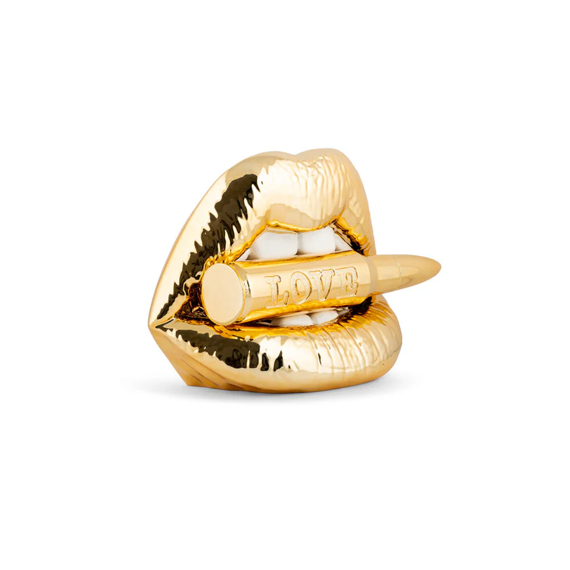 La scultura LABBRA PROIETTILE ORO ARREDO POPART, della collezione Love Bite non si limita a decorare, ti guarda, ti sfida, vuole la tua attenzione.