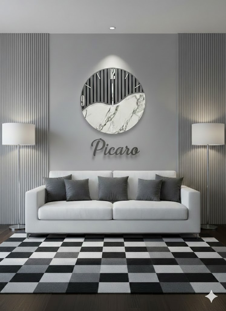 Trasforma il tuo ambiente con l’orologio da parete Wave Grigio effetto marmo e doghe, un complemento d’arredo esclusivo che fonde minimalismo contemporaneo e lusso classico. Progettato per chi ricerca un dettaglio distintivo, questo orologio è il protagonista ideale per saloni moderni, uffici di prestigio o zone living ricercate.