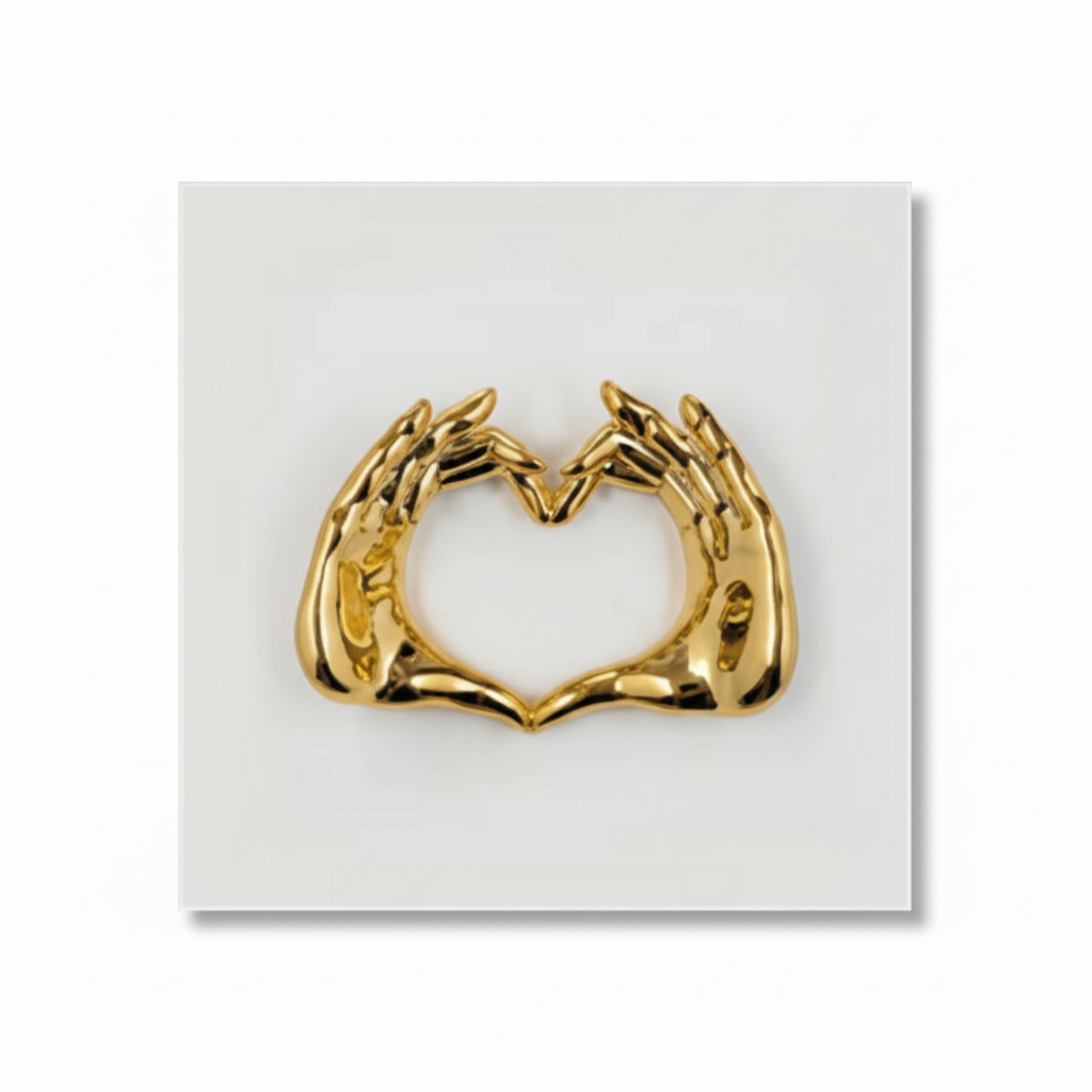 Il quadretto raffigura due mani che si intrecciano con delicatezza per formare il simbolo universale del cuore. La finitura in rilievo crea un gioco di luci e ombre che dona profondità e carattere alla parete.