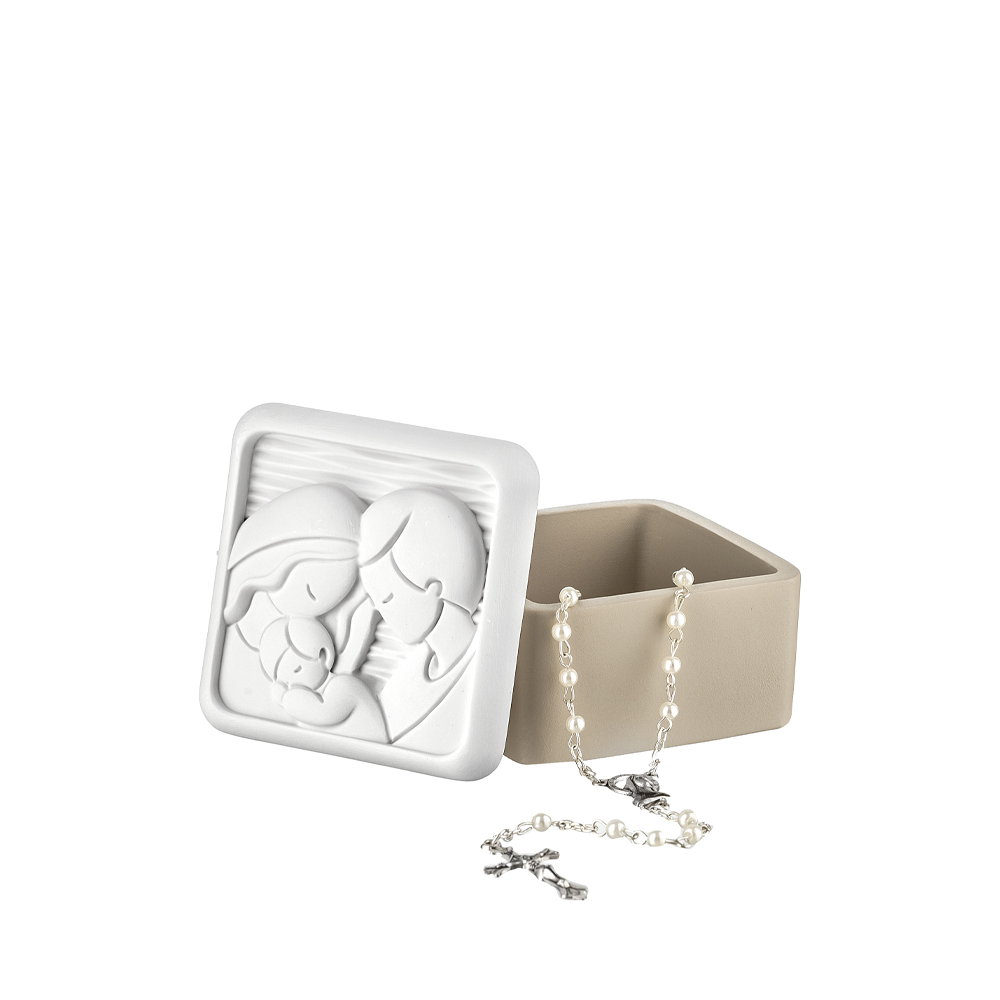 La Scatola Portarosario Sacra Famiglia della linea Bongelli Preziosi è l’emblema della bomboniera di valore, che unisce il profondo significato spirituale a una funzione pratica.