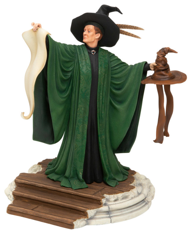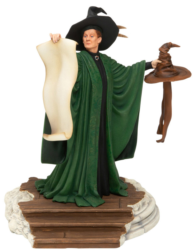 La Statua Professoressa Mc Granitt della Harry Potter collection ritrae la temutissima responsabile della Casa Grifondoro con il cappello di selezione e la lista del primo anno in mano, si prepara ad assegnare loro le loro case.